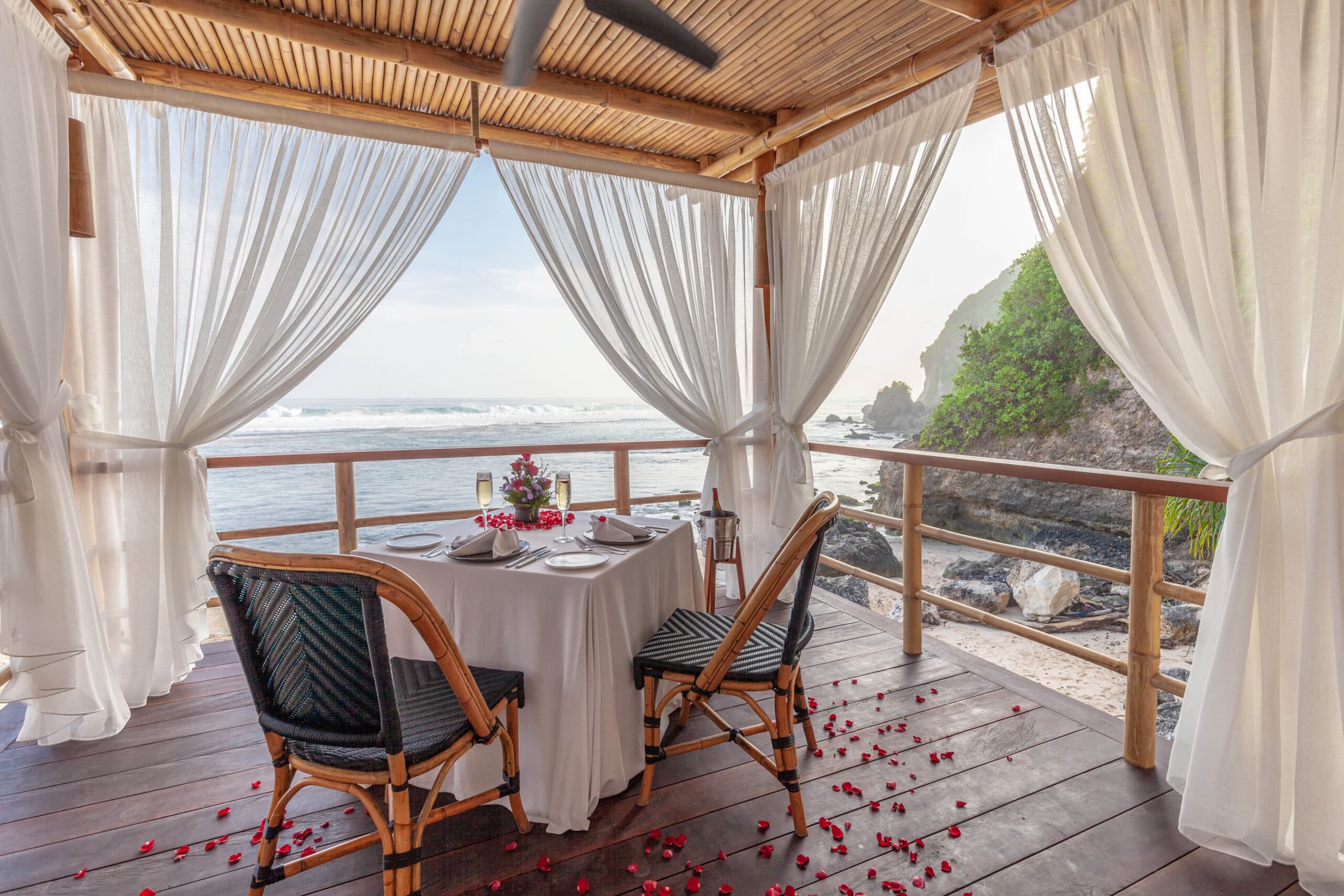 As the sun sets to reveal cosmic constellations, your Private Beach Bungalow can be transformed into an elegant dining area, whether it’s dining for two or a party of more.