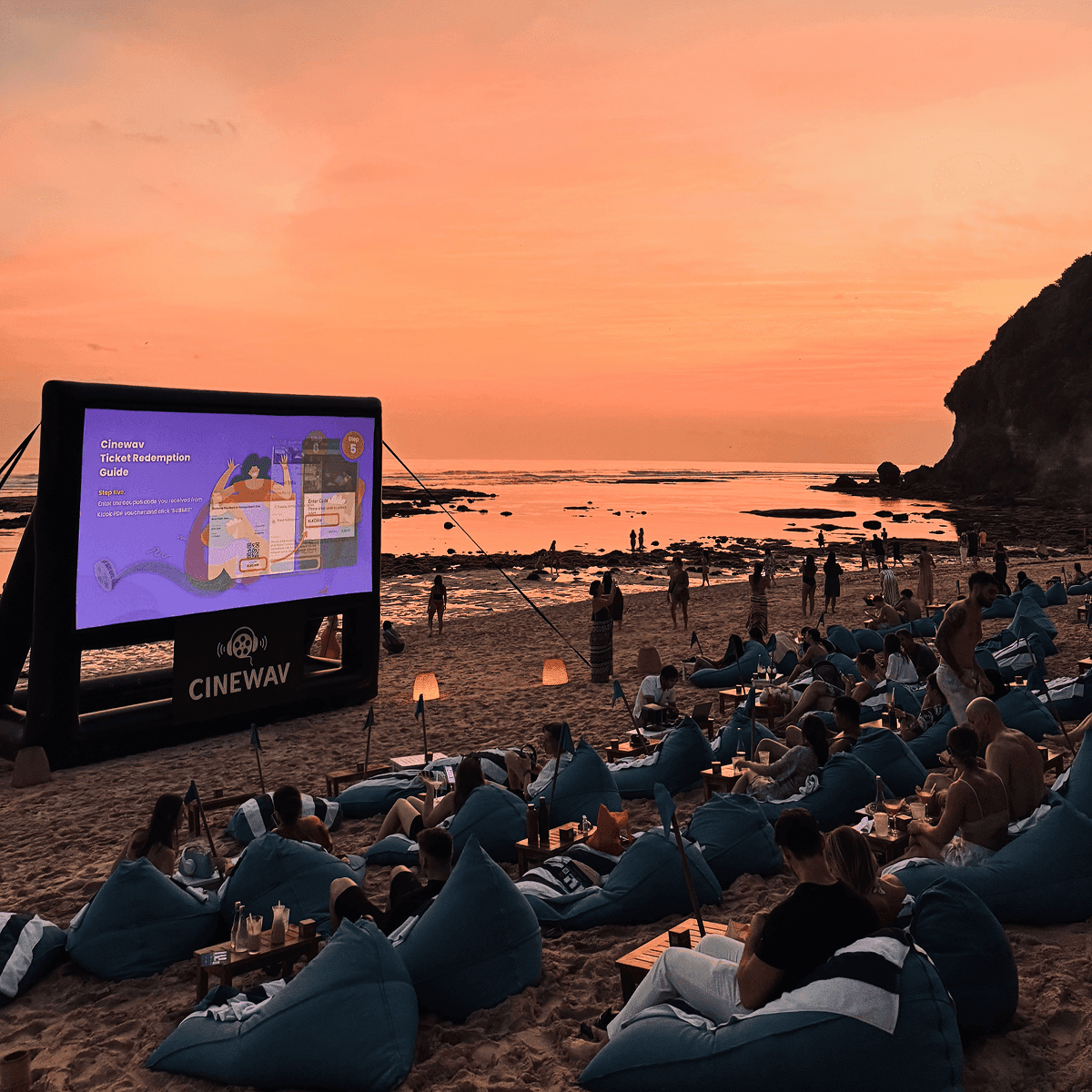 Utilising a ‘silent cinema’ method, you can use earphones to listen to HD audio on your smartphone, in sync with the big screen visuals in front of you and fully immerse yourself in the movie amid an exceptional beachfront atmosphere.