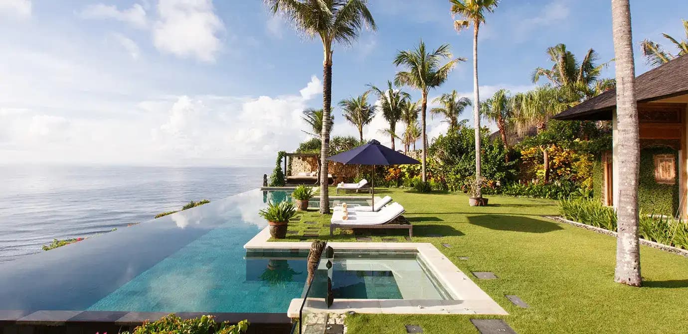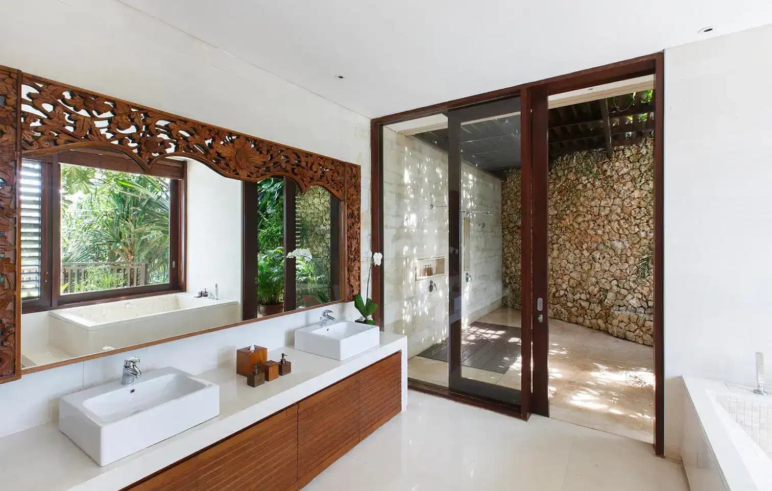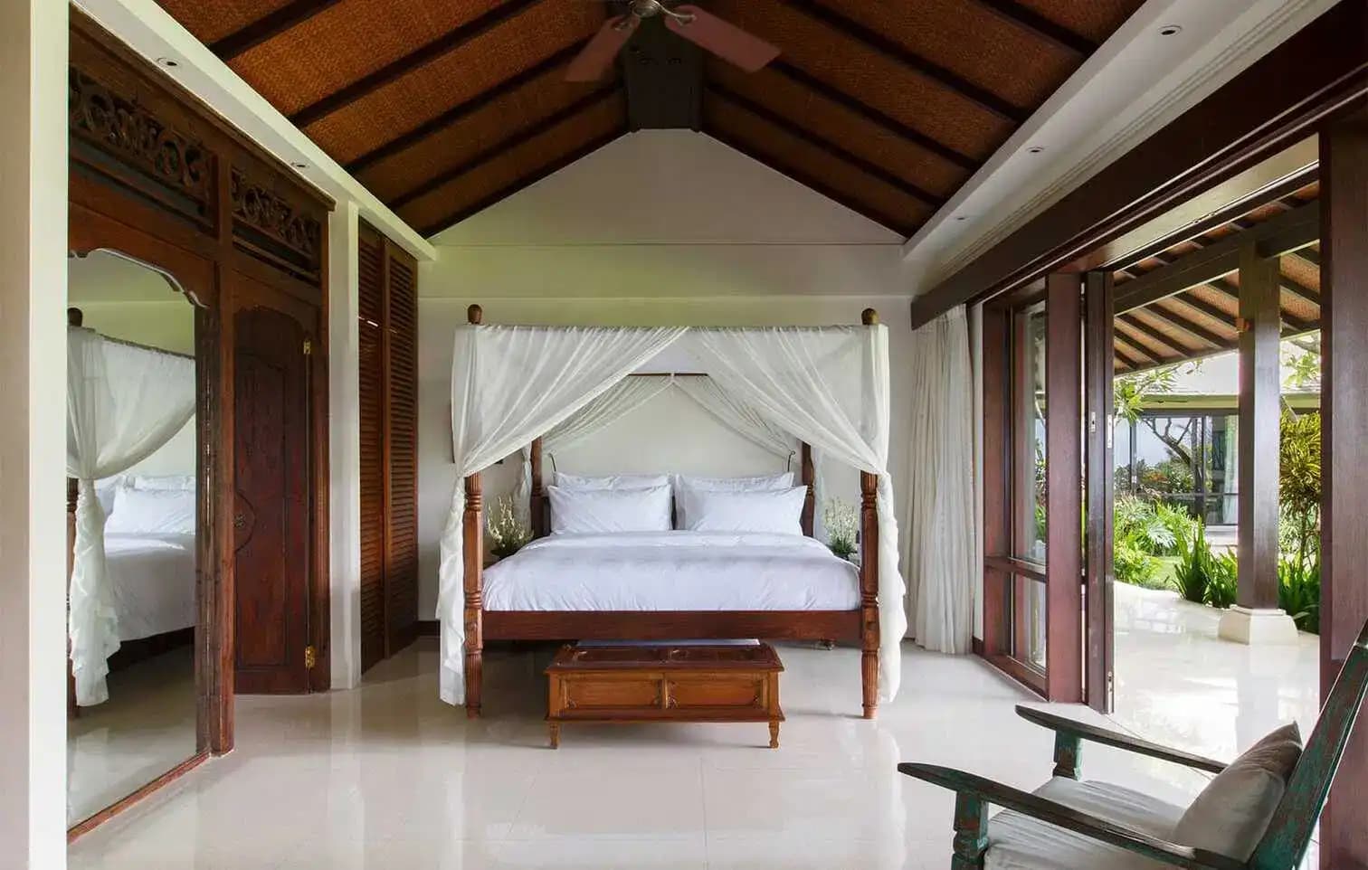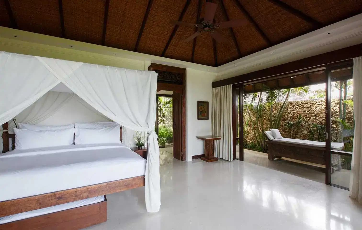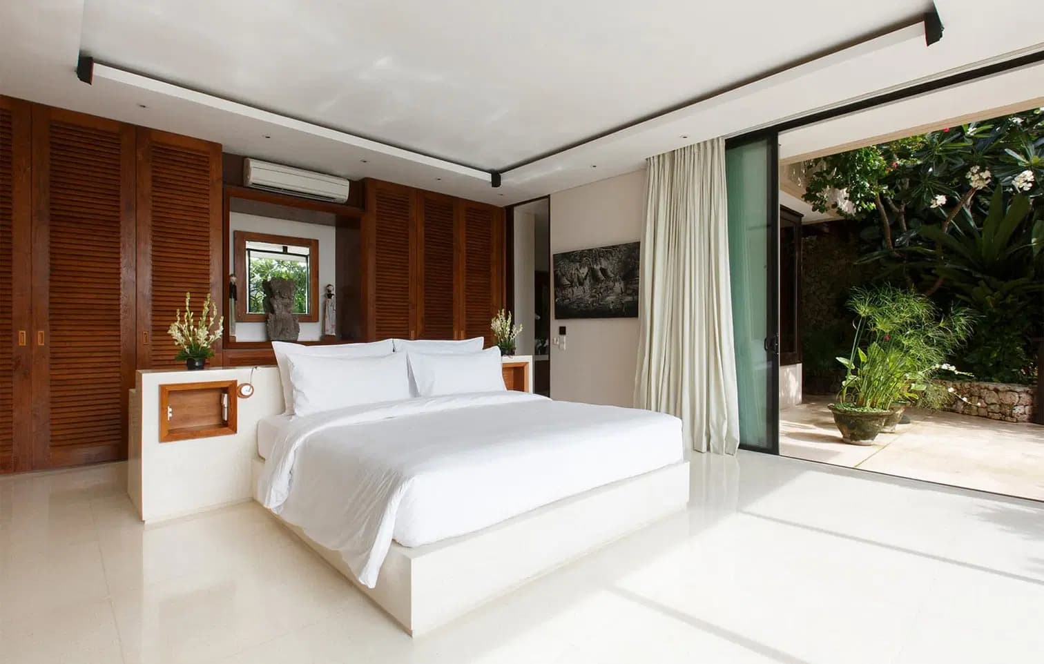 Ambar Villa blends Balinese elegance with panoramic ocean views from five king suites. The layout features two interconnecting rooms perfect for families, while the detached master suite provides a secluded, tranquil sanctuary with breathtaking vistas and spacious, spa-like bathrooms.