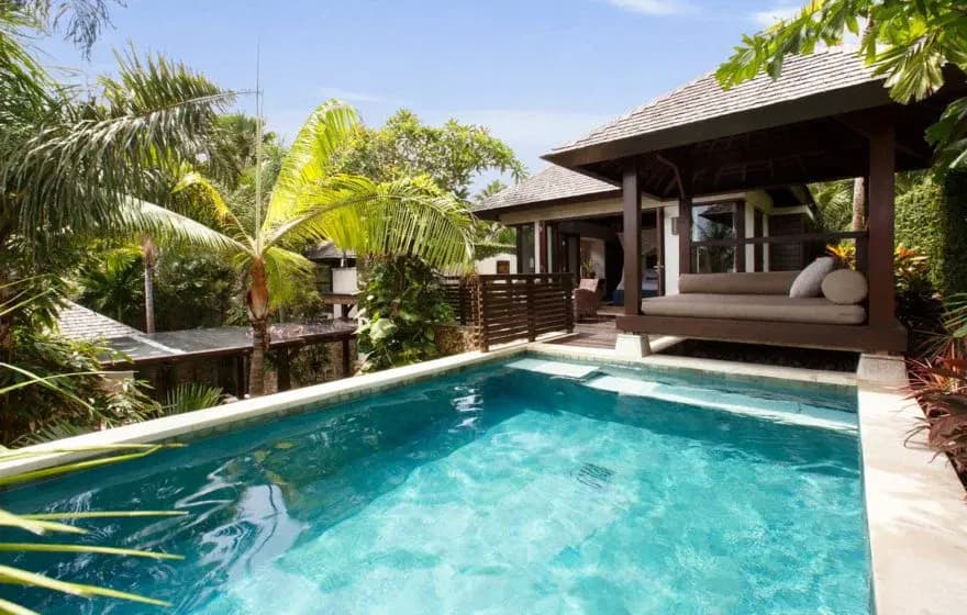 A Balinese-style clifftop compound, Chintamani Villa offers multi-level luxury overlooking the Indian Ocean. The grand Master Bedroom boasts direct ocean frontage, while every guest suite features a private plunge pool, landscaped garden terraces, and secluded outdoor seating for ultimate peace.