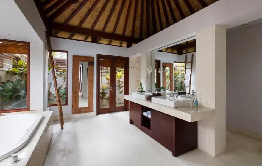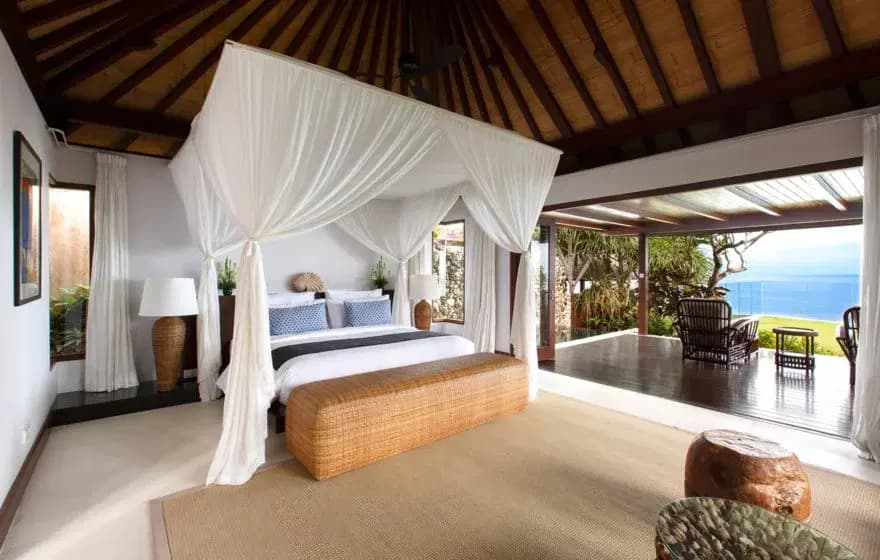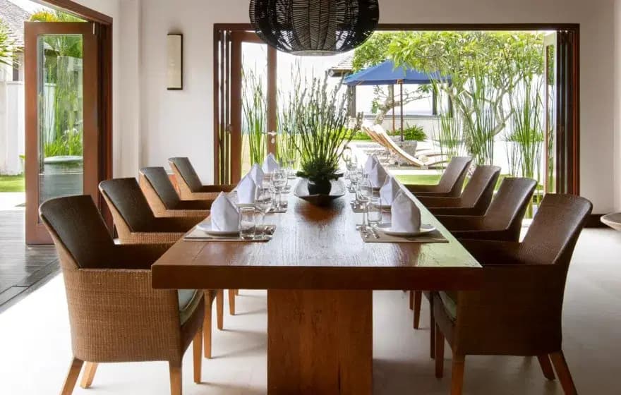 Nora Villa blends minimalist luxury with soaring ceilings and glass doors. This five-bedroom sanctuary features a grand master suite with a plunge pool, guest suites with garden terraces and outdoor showers. Featuring five separate bedrooms within the private an