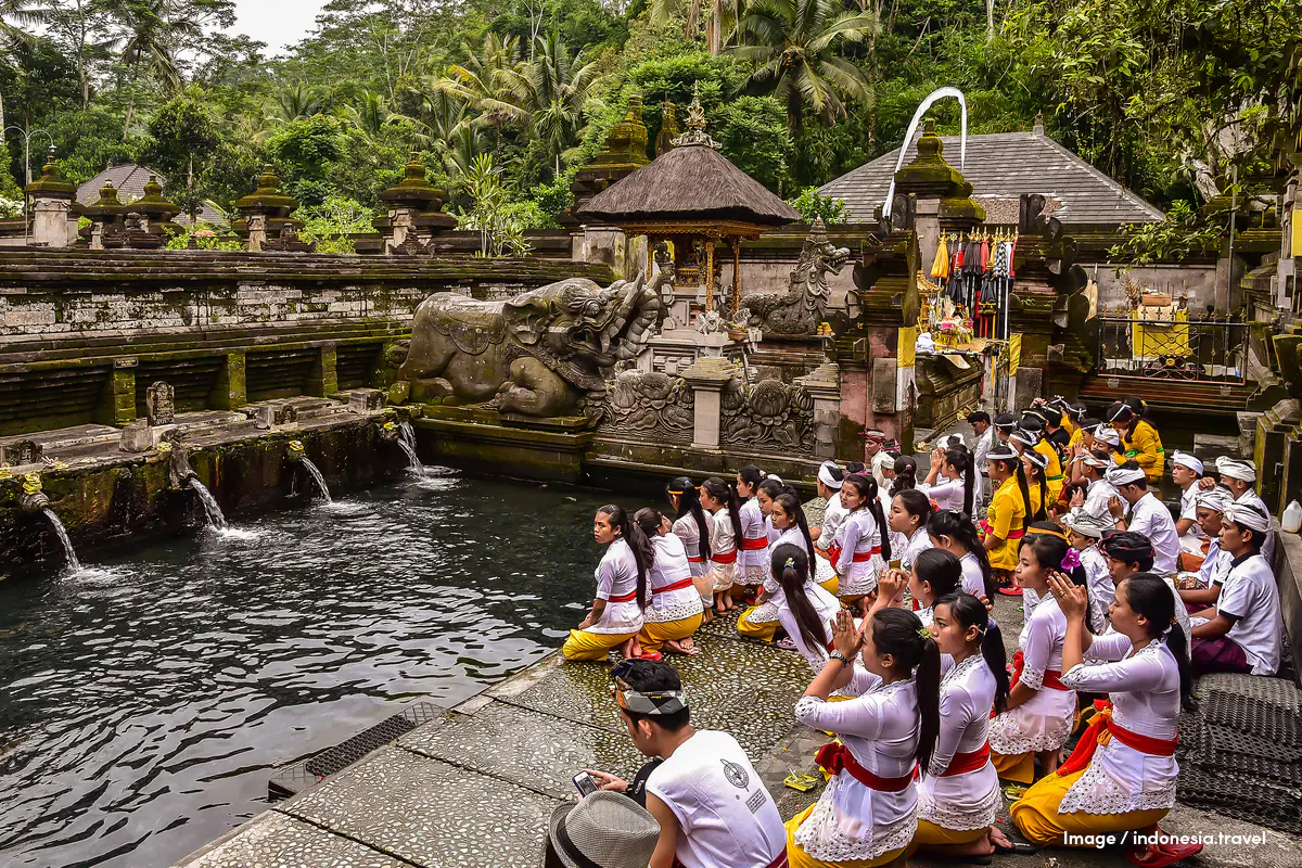 The Subak network consists of interconnected weirs and canals where water flows from springs through Bali’s water temples, coordinating water use to each rice field. These water temples cover a land mass of 19,500 hectares, with the primary being Pura Ulun Danu Batur, located along the crater of Lake Batur, believed to serve the goddess of the water, Dewi Danu.