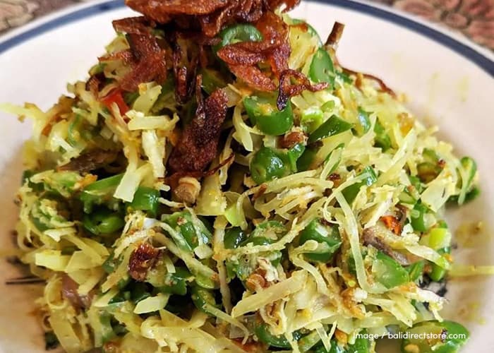 Consisting of a mixture of finely chopped meat, vegetables, grated coconut and spices, and traditionally animal blood, that gives it its intense flavour, Lawar is one of Bali’s most famous local dishes. It has been described as quite the ‘daring’ dish for visitors to try, but if you’re looking to sample all of the traditional cuisine in Bali, then Lawar should make your list. Fear not, if you’re vegetarian or vegan you can still experience the Lawar flavours through the ‘white’ version, which instead utilises jackfruit and spices — vegetarian options are very popular throughout Bali and Lawar is often enjoyed alongside many Balinese dishes, including Babi Guling.