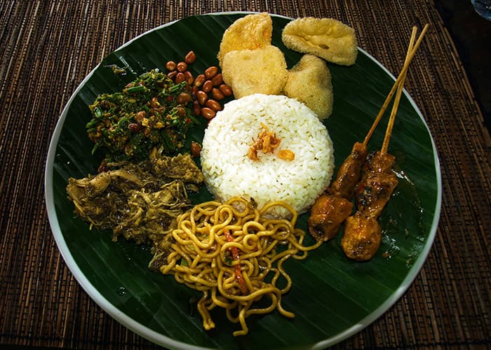Bali’s comforting version of a rice bowl, Nasi Campur and Nasi Ayam, are served at many warungs throughout the island. The dish is a real culmination of Bali’s favourite local dishes and can be enjoyed in various ways. From Lawar and Sate, to fried tempeh, roasted peanuts and spicy sambal, the rice dish brings together what everyone loves and cherishes about Indonesia — a beautiful mixture of flavours, nutrients and cultures from various parts of Indonesia that reflects the nation’s cultural ethos of togetherness.