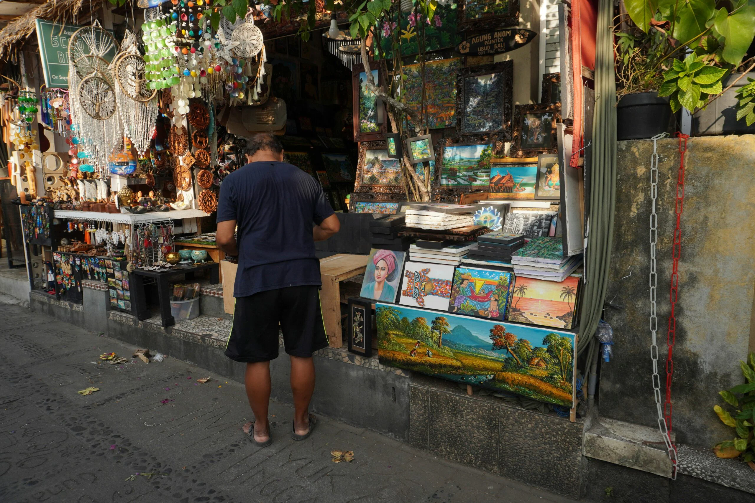 In the 1930s, Ubud emerged as Bali’s central hub for the arts and much has stayed the same in the present day. Before this time, traditional Balinese paintings were created in a Kamasan or Wayang style, often depicting episodes from the Ramayana and Mahabharata epic sagas. The modernisation of art in Bali occurred due to the arrival of many western artists, namely Walter Spies and Rudolf Bonnet, who instilled perspective of Bali’s landscapes, local activities and villages, as well as everyday subjects into their artworks. Ubud was the main hub of this change in style, but surrounding areas of Batuan and Sanur brought forward their own creativity and technique, with the former producing eggshell and seashell paintings. Today, you can find a wonderful mix of both old and new.