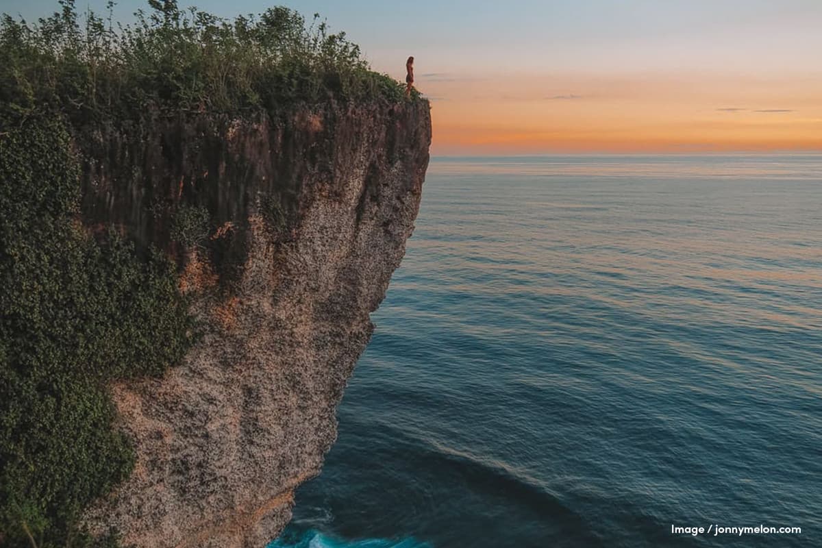Drive 10 minutes and you’ll reach Karang Boma Cliff which affords mesmerising views over the ocean, the rugged coastline and towards Uluwatu Temple in the distance. Following the path, you’ll reach a section of the cliff-face that juts out, offering far greater views, as well as the perfect photo opportunity. Just remember to be careful and to not get too close to the cliff’s edge for your own safety.