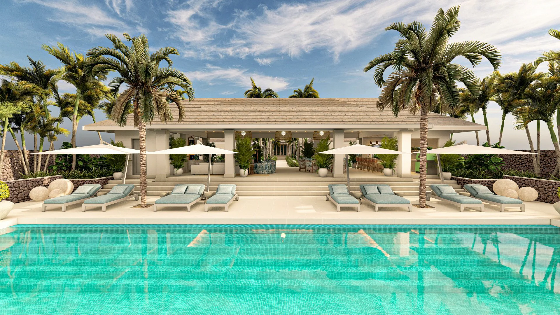 An opulent Master Bedroom blankets the entirety of the first floor with its own private balcony and sunken jacuzzi bathtub. Each suite offers unmatched levels of privacy for moments of solitude while you’re never too far from the main living and Grand Pavilion for joyful moments spent with your nearest and dearest.