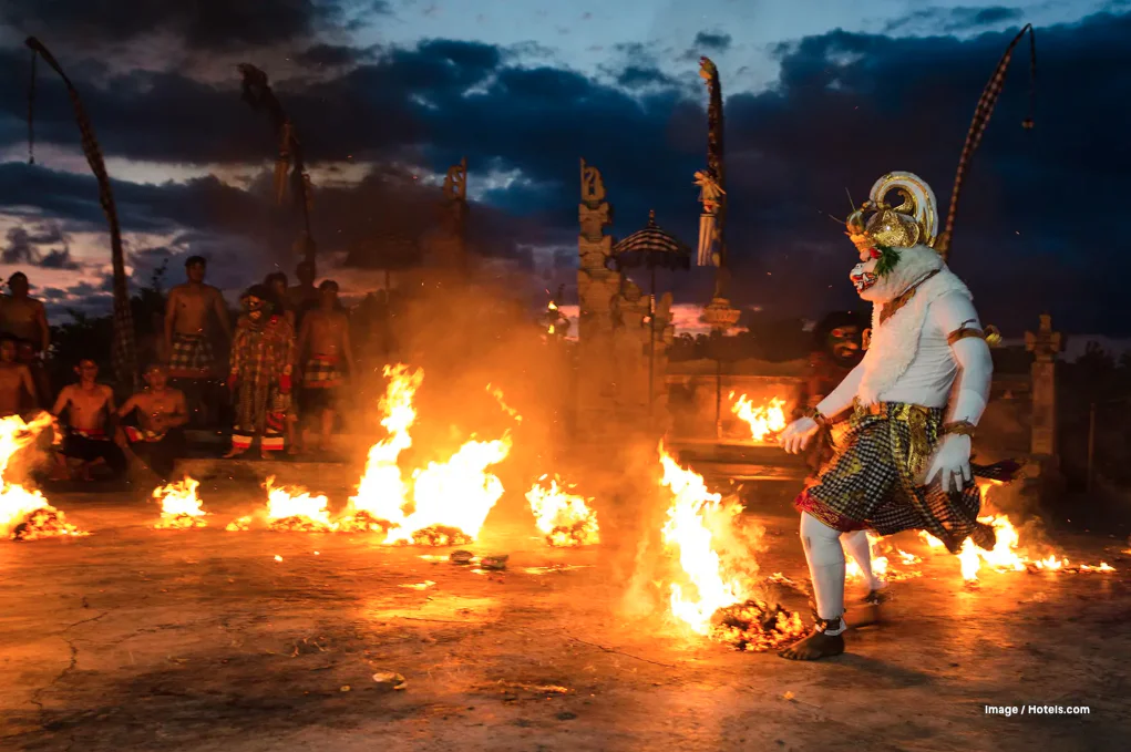 Pass an inviting amphitheatre, where you can watch the dramatic Kecak fire dance. As the sun sets during the performance and the sky dims, the story of the famous epic Hindu story of the Ramayana builds to a sensational fire-related climax.